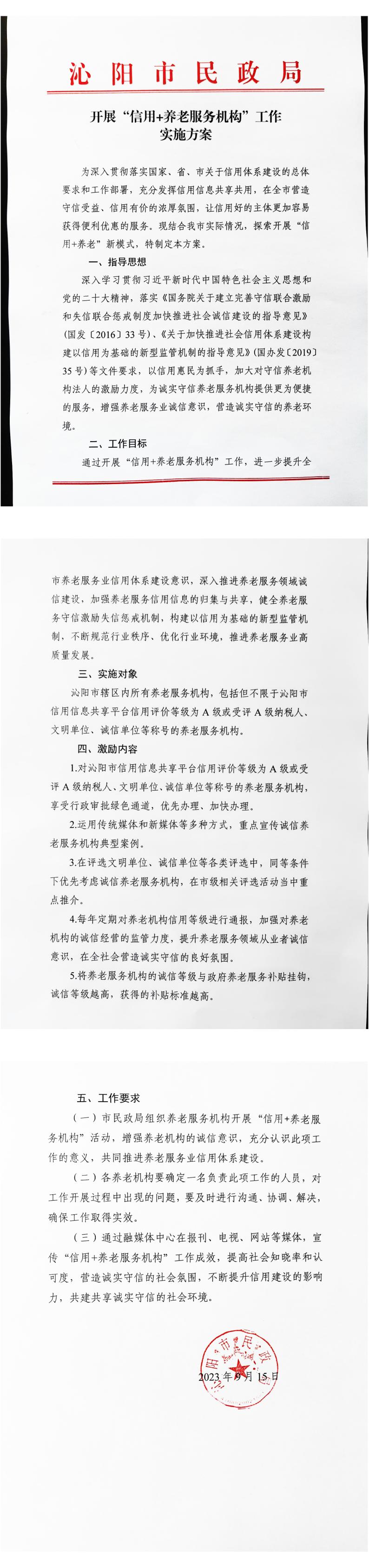 沁阳市民政局开展“信用+养老服务机构”工作实施方案
