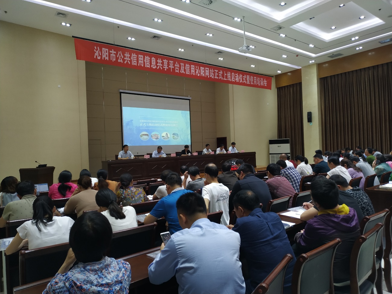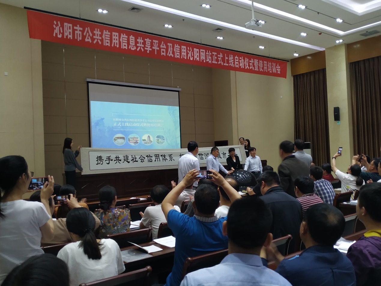 2019年5月21日上午10点,沁阳市公共信用信息共享平台及信用沁阳网站正式上线启动仪式暨使用培训会在市文化艺术中心报告厅举行。河南省信息中心副主任于颖、焦作市发改委副主任刘自胜等领导应邀出席会议。市委常委、常务副市长徐明安、副市长范承军、市信用办主任陈二联、徐州金蝶软件有限公司副总经理张城炜、徐州金蝶软件有限公司武汉研发中心总经理江浩、市社会信用体系建设成员单位和市公共信用信息共享平台共建单位共97家单位分管领导和信息报送人员,以及新闻媒体的同志等参加了启动仪式和培训会。