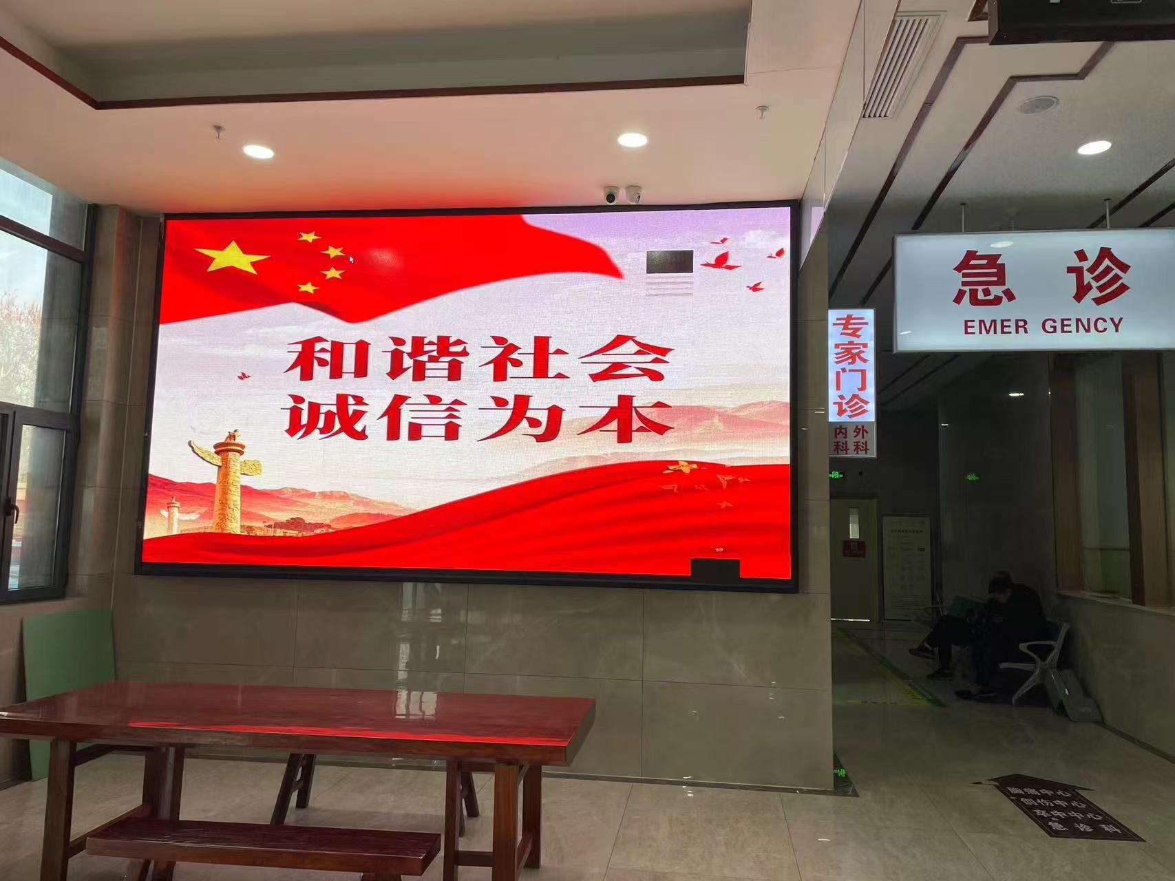 在医院重点区域,通过电子显示屏、电子彩屏循环播放和谐社会,诚信为本"等宣传内容营造了浓厚的诚信氛围